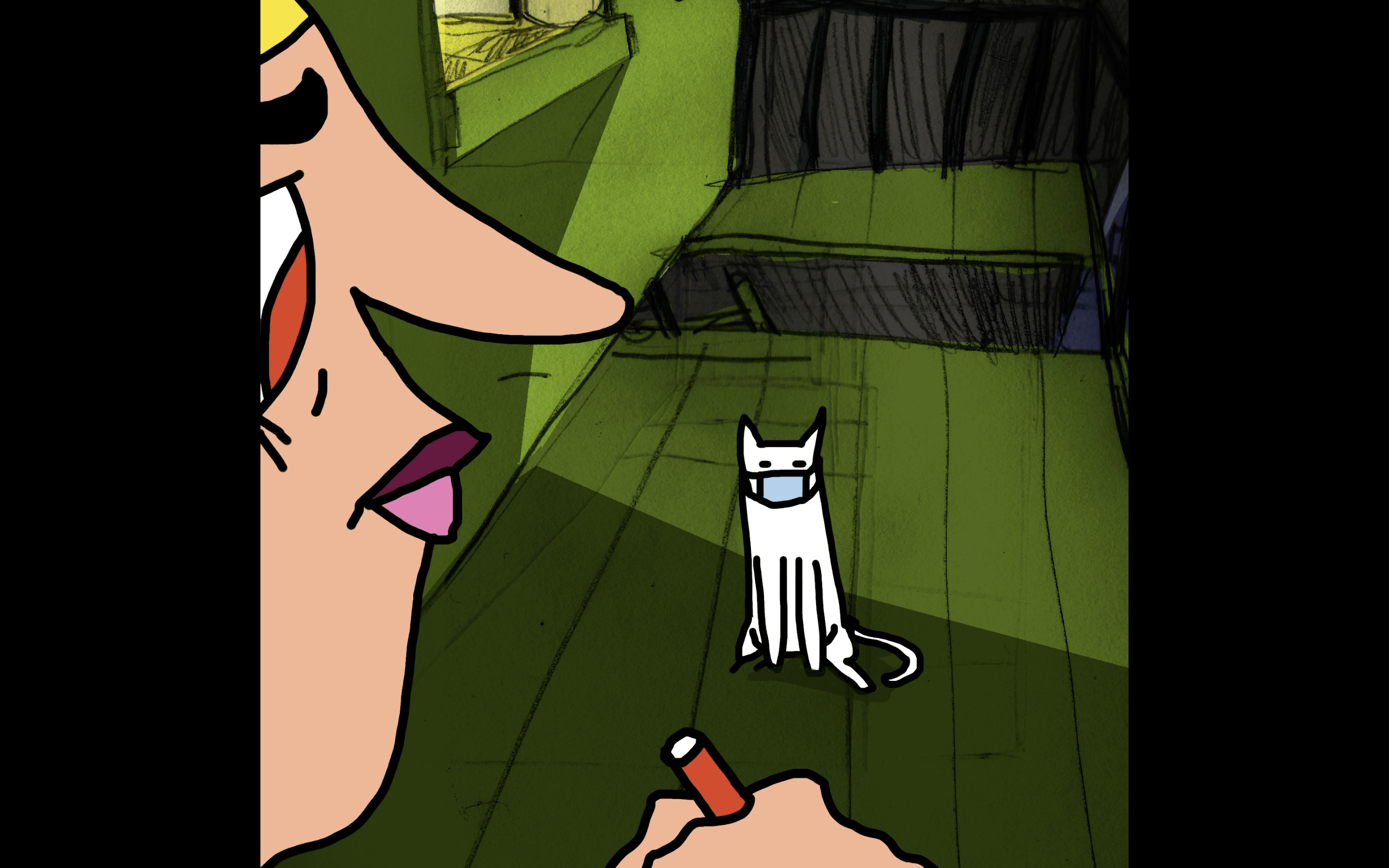written by Ian Reid about a interaction between a girl and cat during the time of Covid. Made during the Winter of 2022 in Providence Rhode Island.
